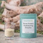 Benproteinhydrolyserande enzym används ofta för att producera kollagenpeptider, benproteinhydrolysater och aminosyrarika lösningar som fungerar som funktionella ingredienser i näringsformuleringar. Det är också lämpligt för smakrika hydrolysater och kryddbaser, där kontrollerad enzymatisk hydrolys kan förbättra munkänslan och umamiupplevelsen. I djurfoder och sällskapsdjursfoder bidrar det till att förbättra smältbarheten och näringstillgängligheten från benproteiner.