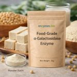 Livsmedelsklassad α-galaktosidas är ett specialiserat hydrolytiskt enzym som används i livsmedelsbearbetning för att förbättra kvaliteten, smältbarheten och sensoriska egenskaperna hos växtbaserade ingredienser. Det är utformat för att bryta ner α-1,6-galaktosidbindningar finns i naturligt förekommande oligosackarider såsom raffinose och stakios, som vanligtvis finns i sojabönor, baljväxter och många växtproteinsystem. Dessa oligosackarider är allmänt erkända som viktiga bidragande orsaker till matsmältningsbesvär, eftersom de inte bryts ned effektivt i den övre delen av mag-tarmkanalen hos människor.