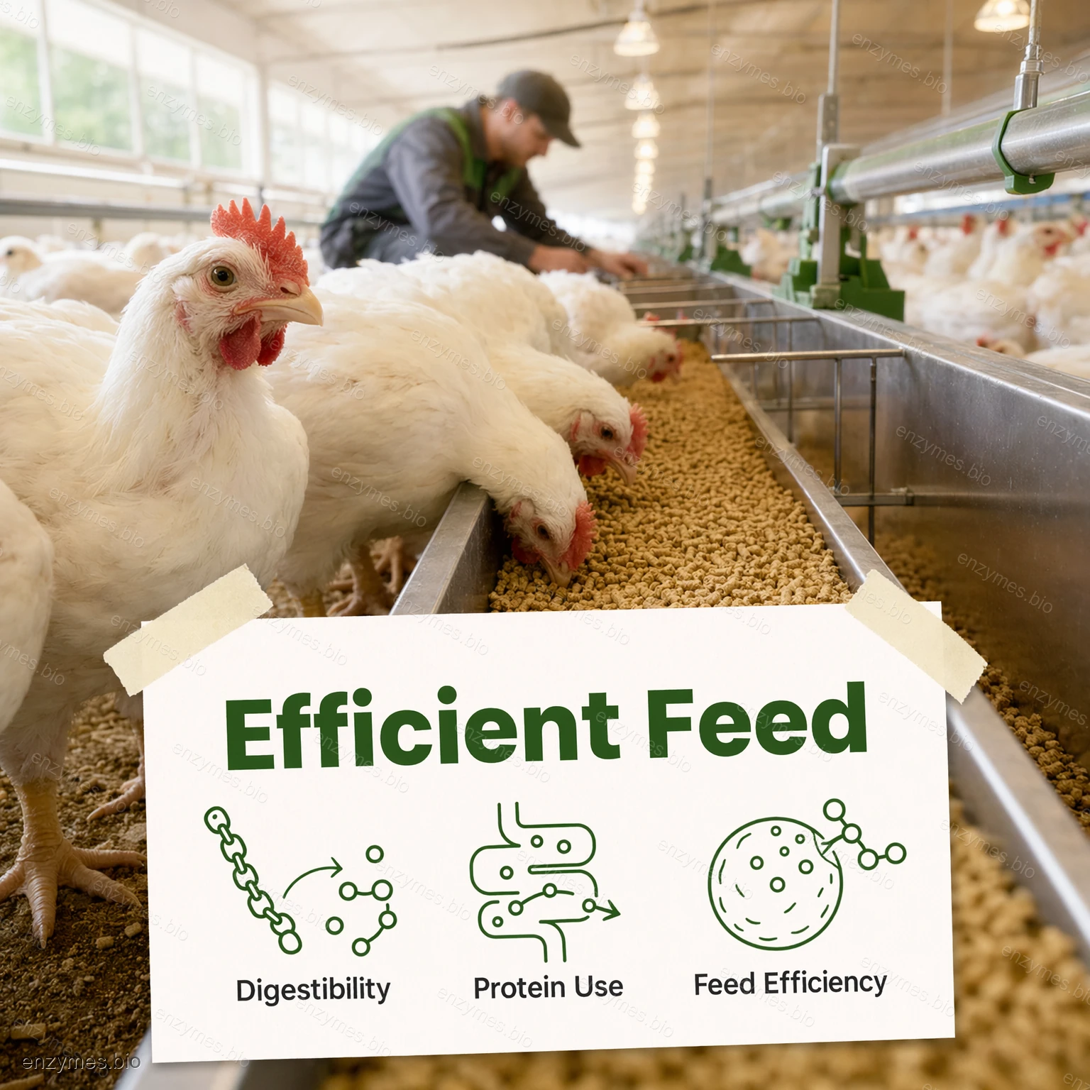 - Foderindustri: Papain kan användas som fodertillsats för att utveckla proteinkällor, öka foderutnyttjandegraden, underlätta matsmältningen och främja djurens tillväxt.