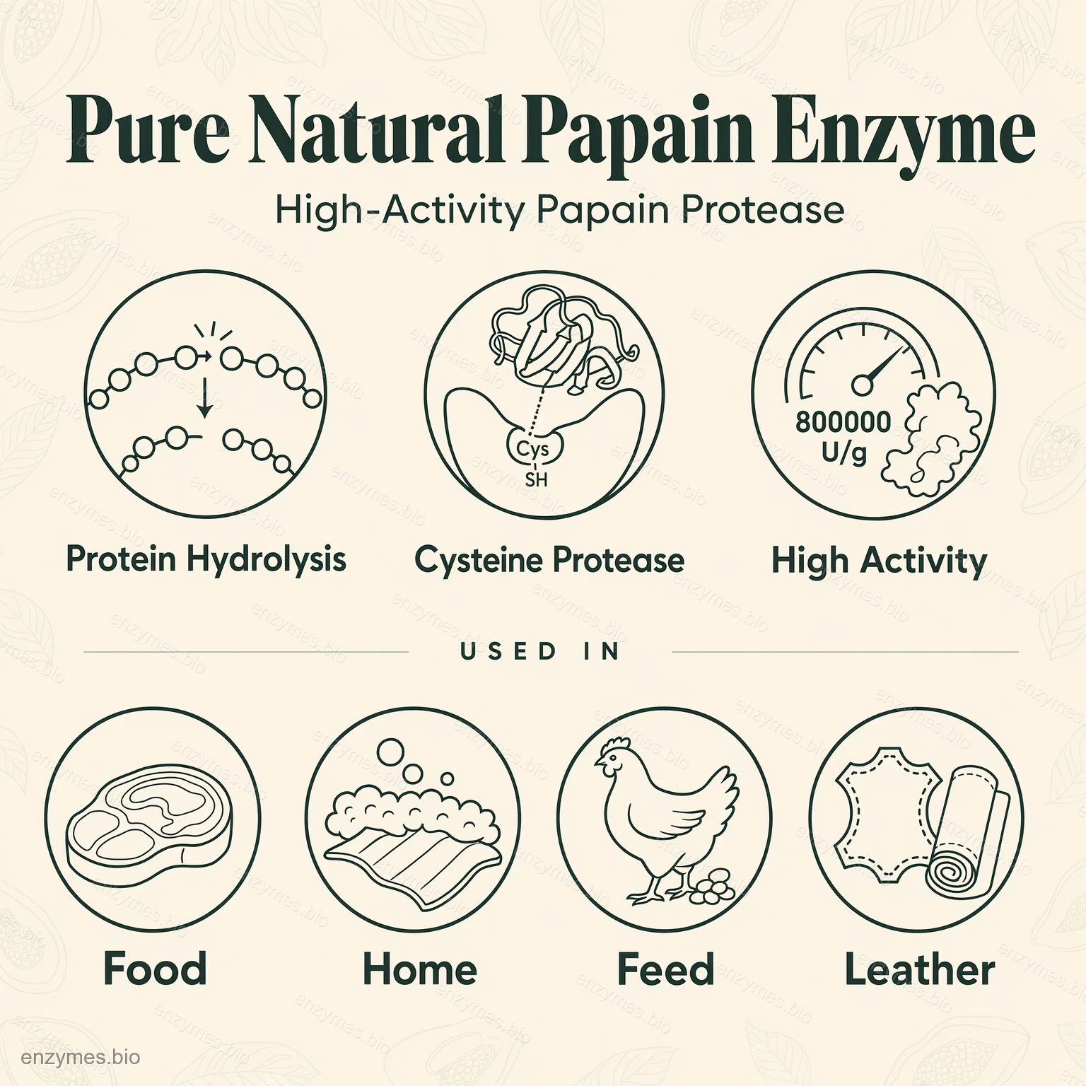 Papain är ett mångsidigt proteolytiskt enzym som används inom livsmedels-, textil-, läder- och kosmetikaindustrin.