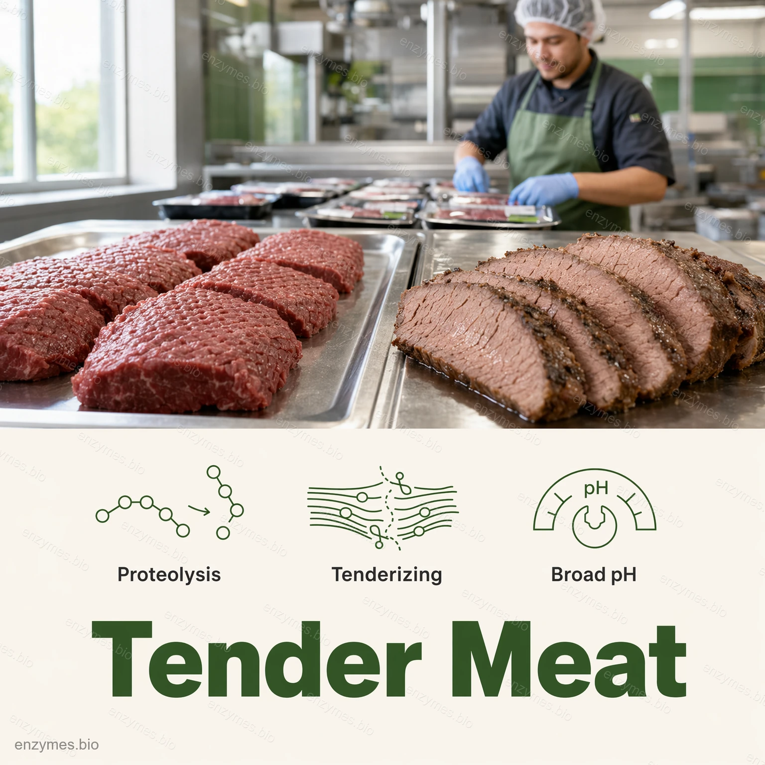 –LivsmedelsindustrinGenom att använda enzymatiska reaktioner kan papain hydrolysera livsmedelsmakromolekyler till småmolekylära peptider eller aminosyror, vilket effektivt omvandlar protein för användning i tillverkning av livsmedelsingredienser och proteinhydrolysatproduktion.