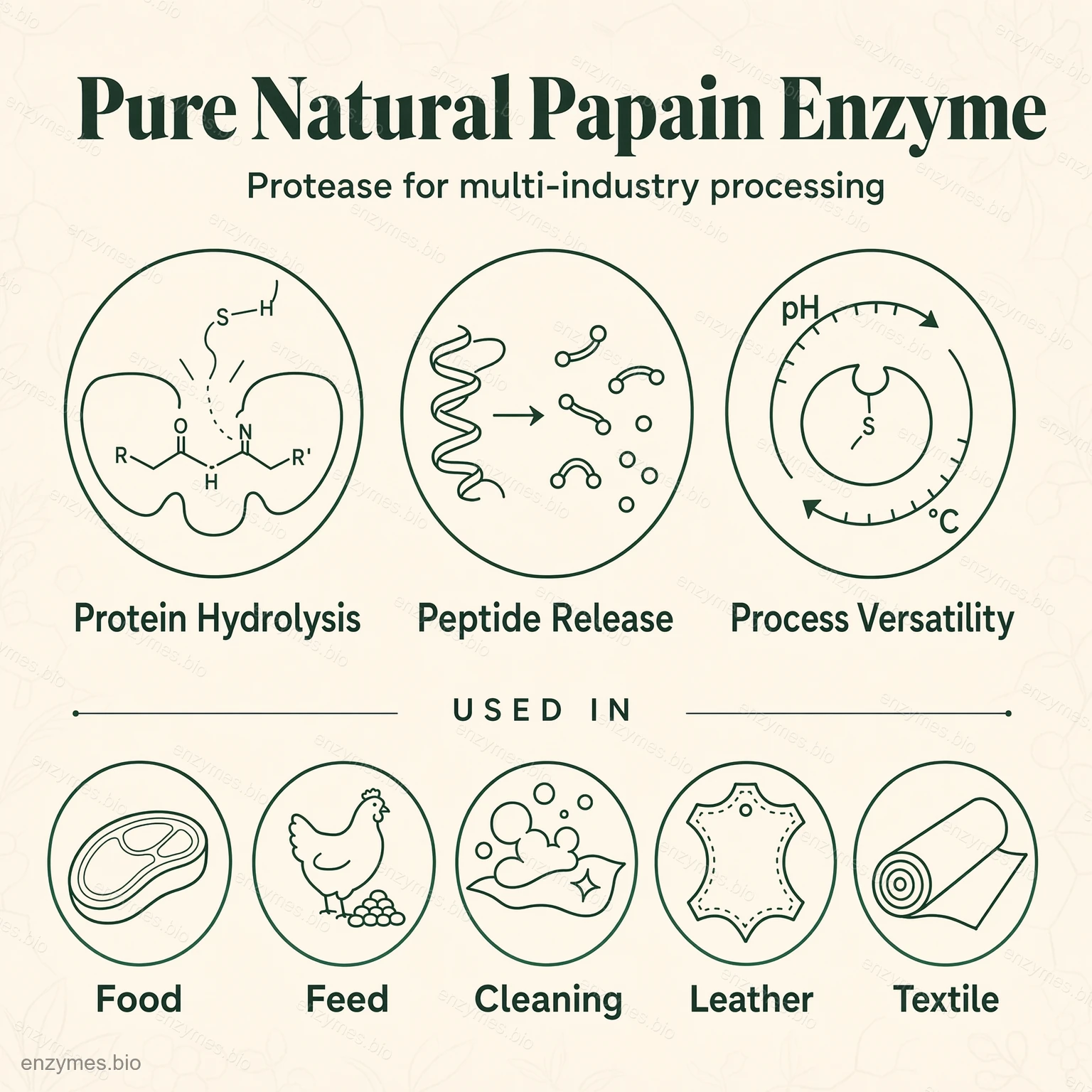– Papain is a versatile proteolytic enzyme used across food processing, textile, leather, and cosmetic manufacturing industries.