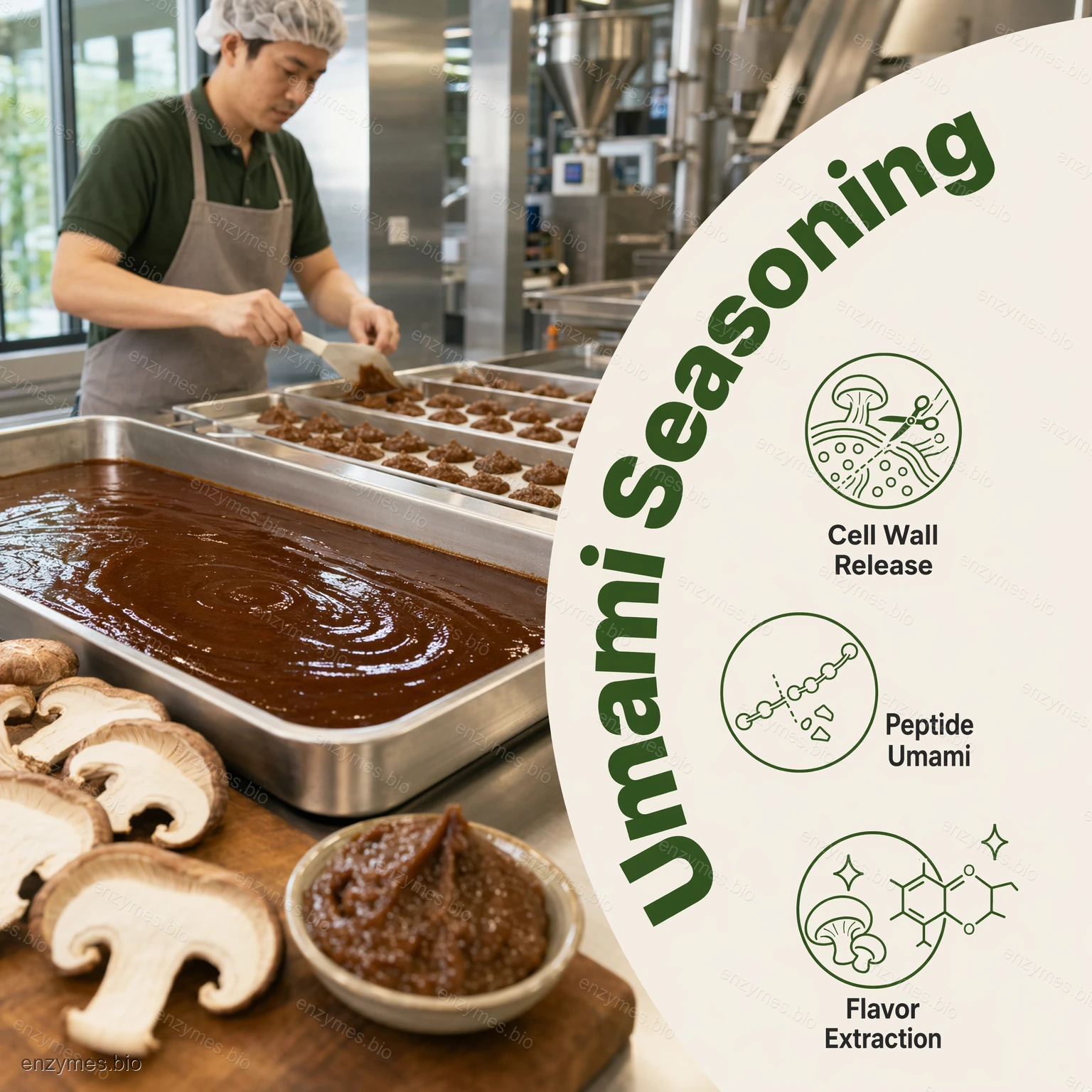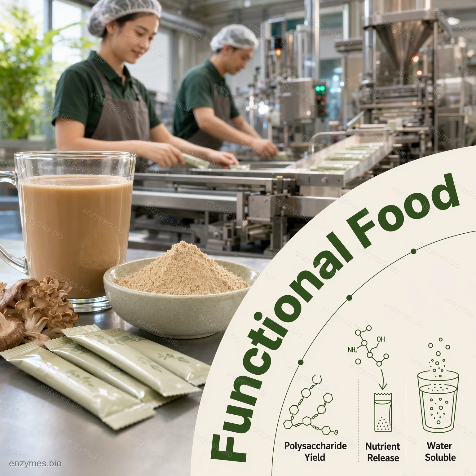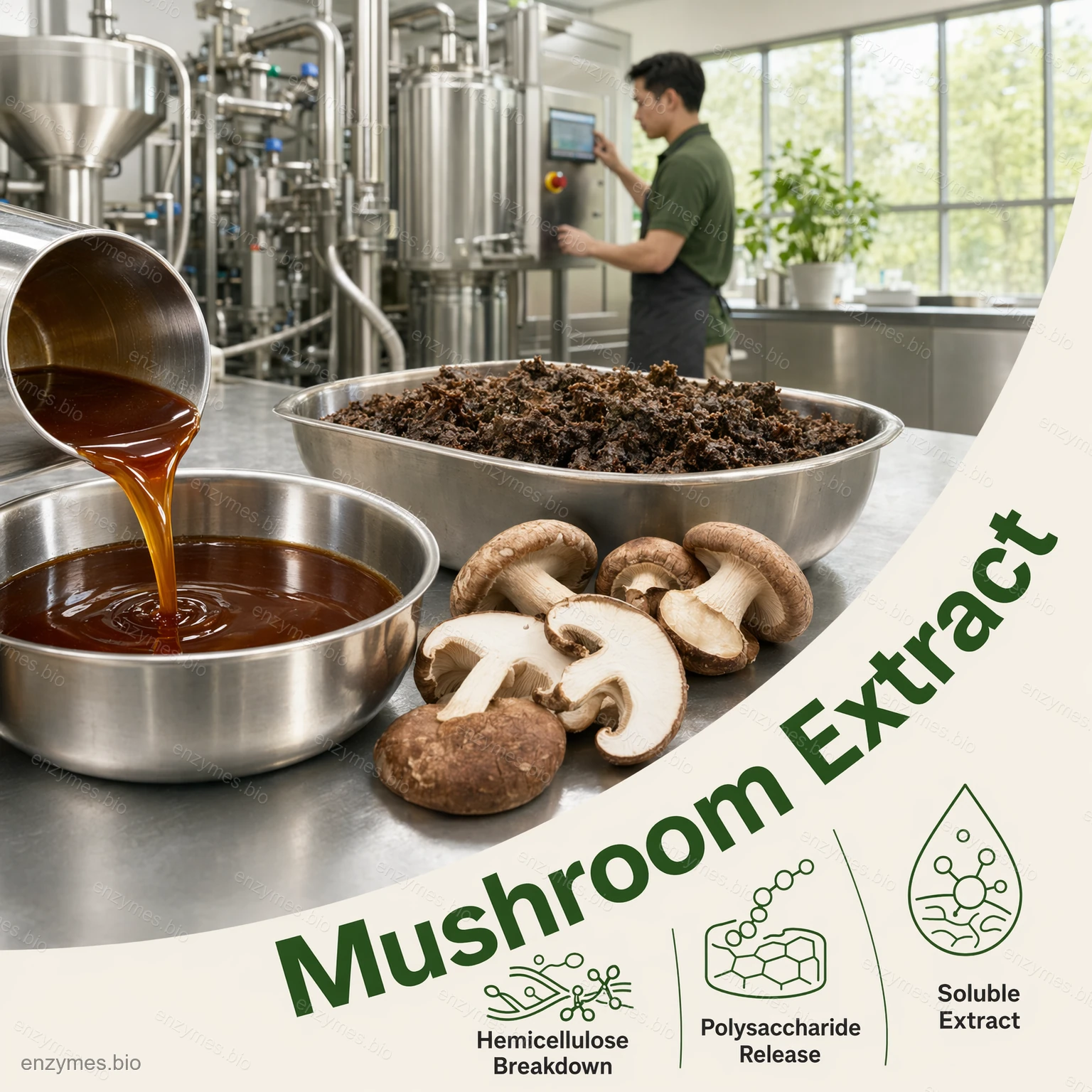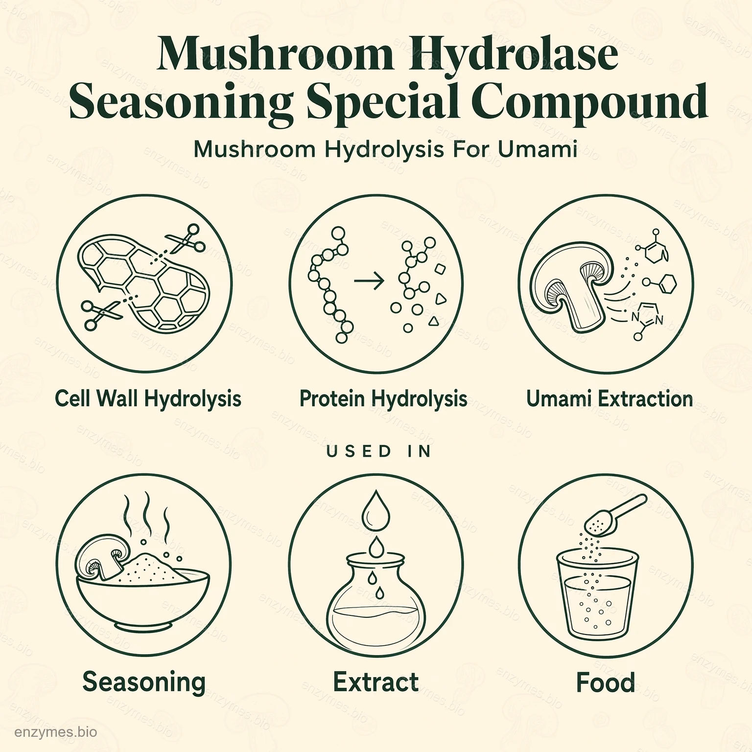 Shiitake mantarı hidrolazı shiitake mantarı gibi yenilebilir mantarların hidrolizi için özel bir bileşik enzim preparatıdır ve aroma maddelerini çıkarır. Esas olarak selülaz, hemiselülaz, proteaz vb.'den oluşur. shiitake mantarı gibi yenilebilir mantar bileşenlerini baharat ve fonksiyonel gıda olarak çıkarma endüstrilerinde uygulanır.