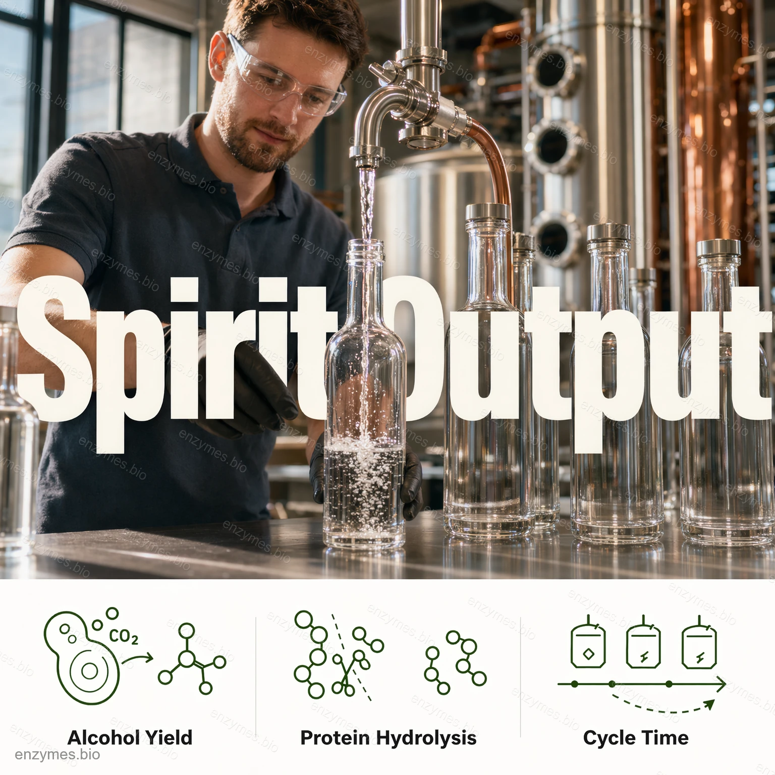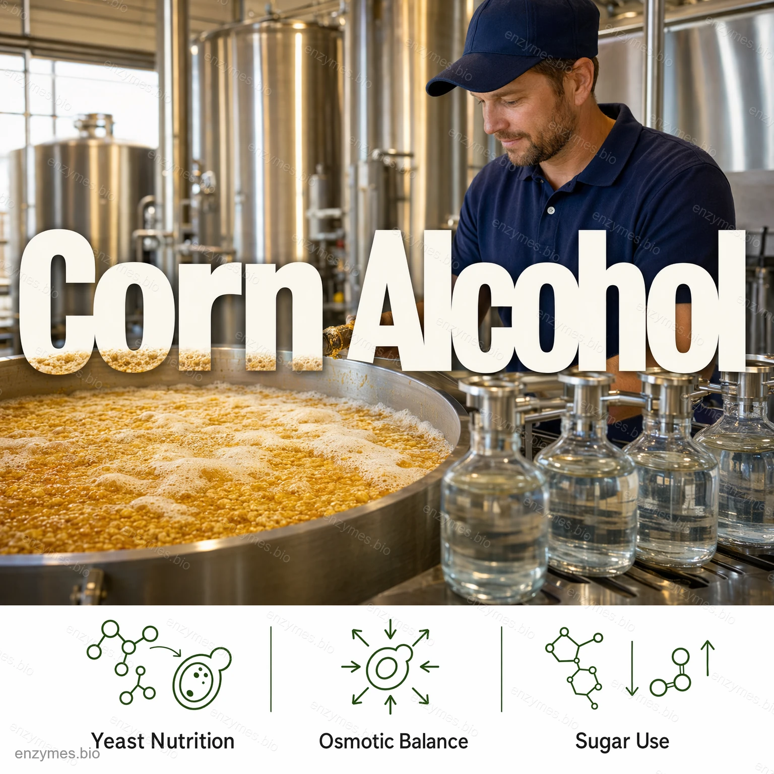 Enzymes.Bio糖蜜或玉米酒精發酵專用蛋白酶是以黑麴菌為原料,透過培養及萃取技術,與酵母啟動子複合而成。本品在酸性條件下能催化蛋白質的水解,並能促進酵母的功能。