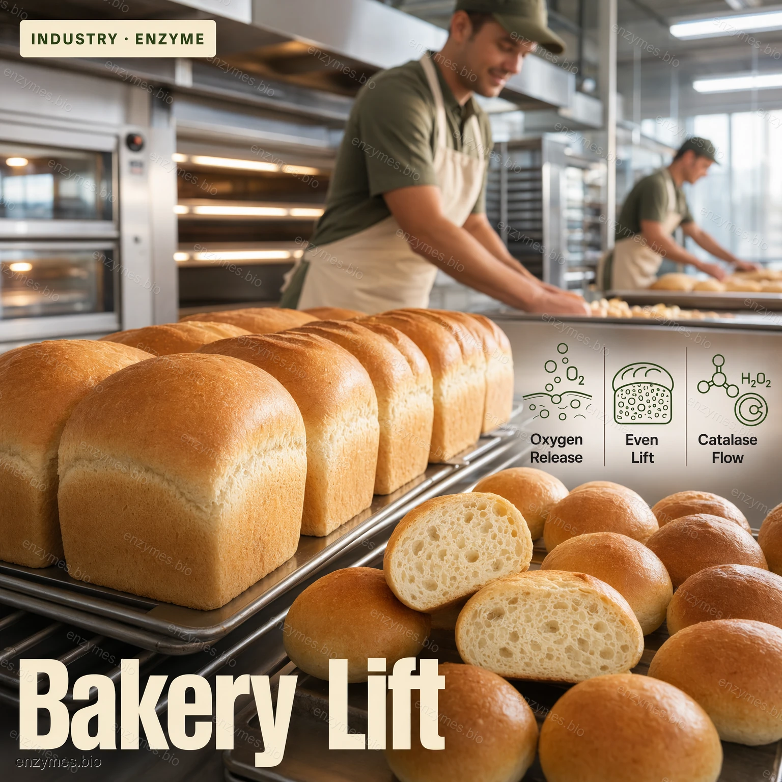 - 食品工業:消除相關的殘留過氧化氫,例如食品漂白、澱粉變性、牛奶生產、蛋製品加工、乳酪製造以及其他使用過氧化氫作為漂白劑、氧化劑或消毒劑的情況;也用作烘焙食品的膨鬆劑。