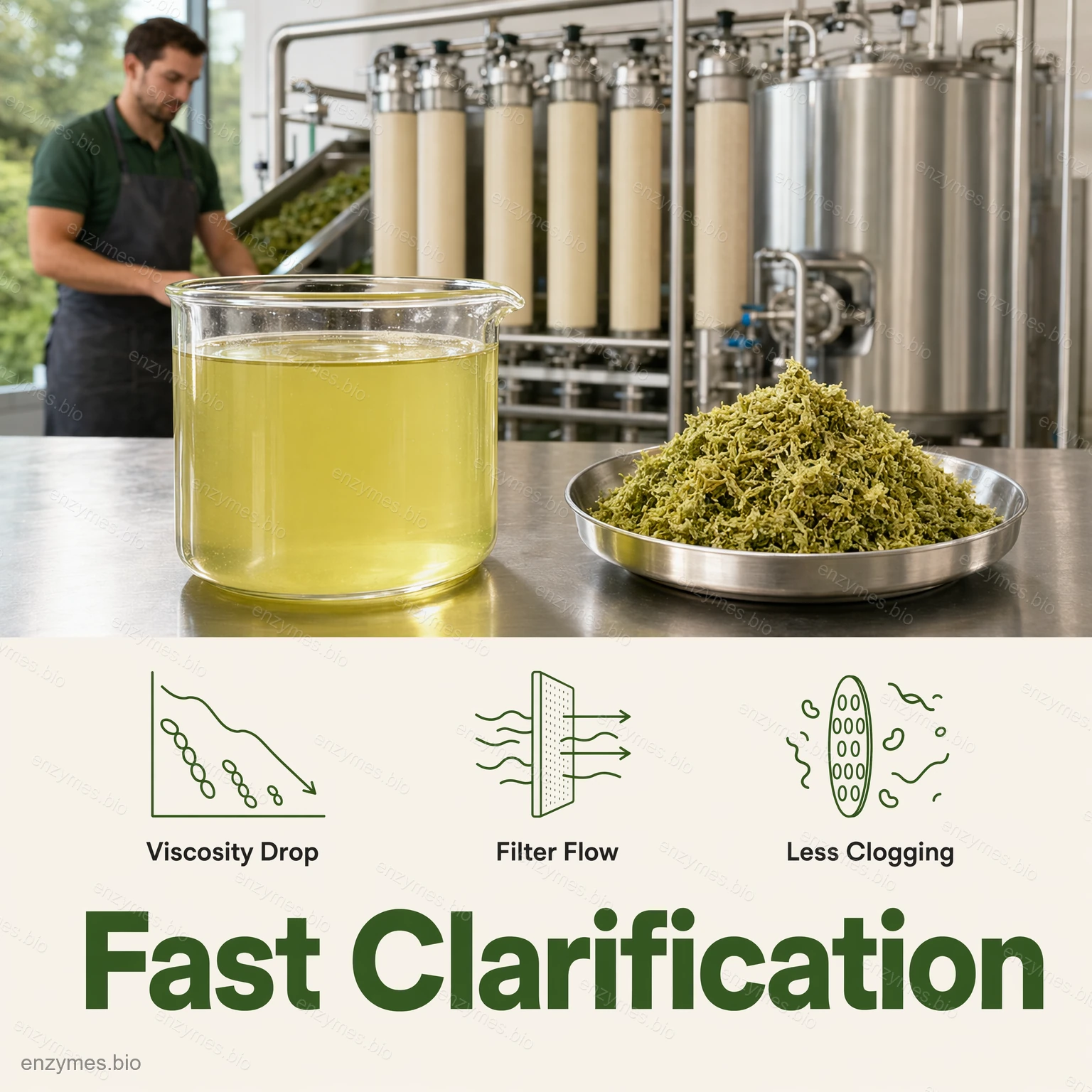在草藥和植物萃取過程中,β-葡聚糖通常會造成黏度高、過濾速度慢以及活性成分釋放不完全等問題。β-Glucanase 可將複雜的 β-葡聚糖轉換為低分子量的寡糖和可溶性糖,從而有效降低萃取系統的黏度。這可改善質量傳輸、增強液體流動,並使過濾和澄清等下游處理更加容易。.