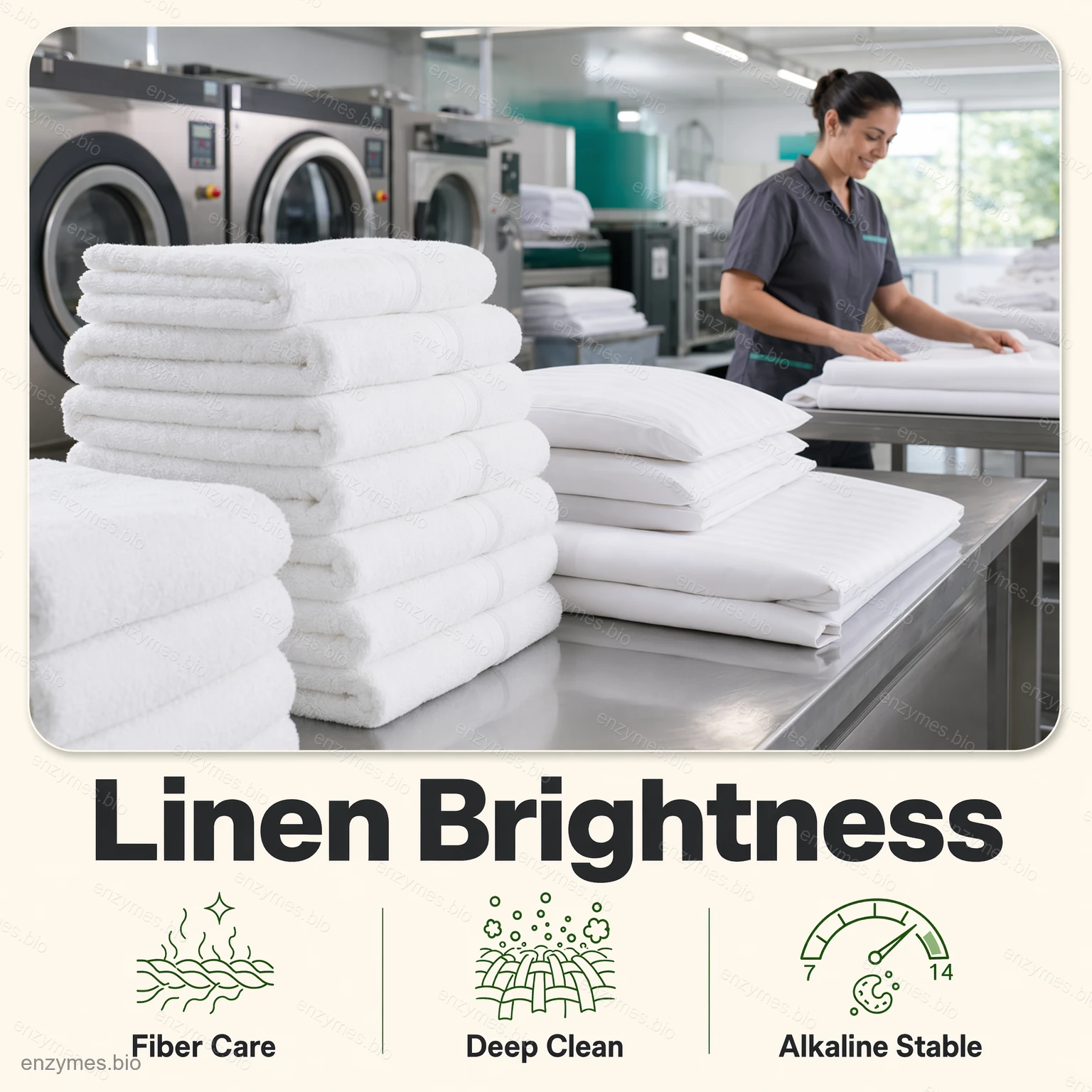 - Оновлення поверхні волокна: Компонент целюлази діє в м'яких лужних умовах, поліруючи та відновлюючи текстильні волокна. Він видаляє мікропілінг з бавовняних поверхонь, відновлює пошкоджені волокна, покращує гладкість та підвищує яскравість і білизну тканин.
