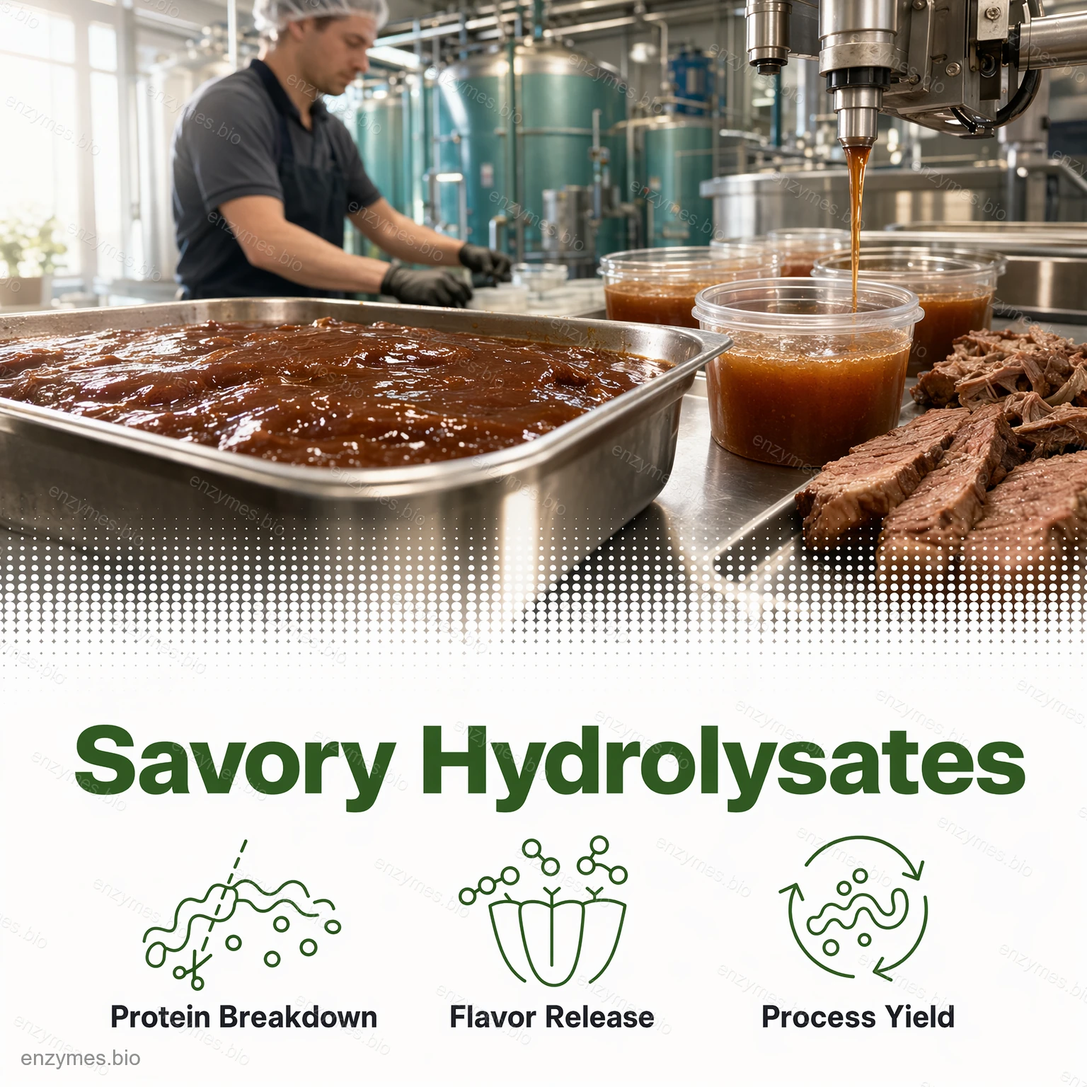 - Гідроліз м'ясного білка: виробництво м'ясних ароматизаторів.