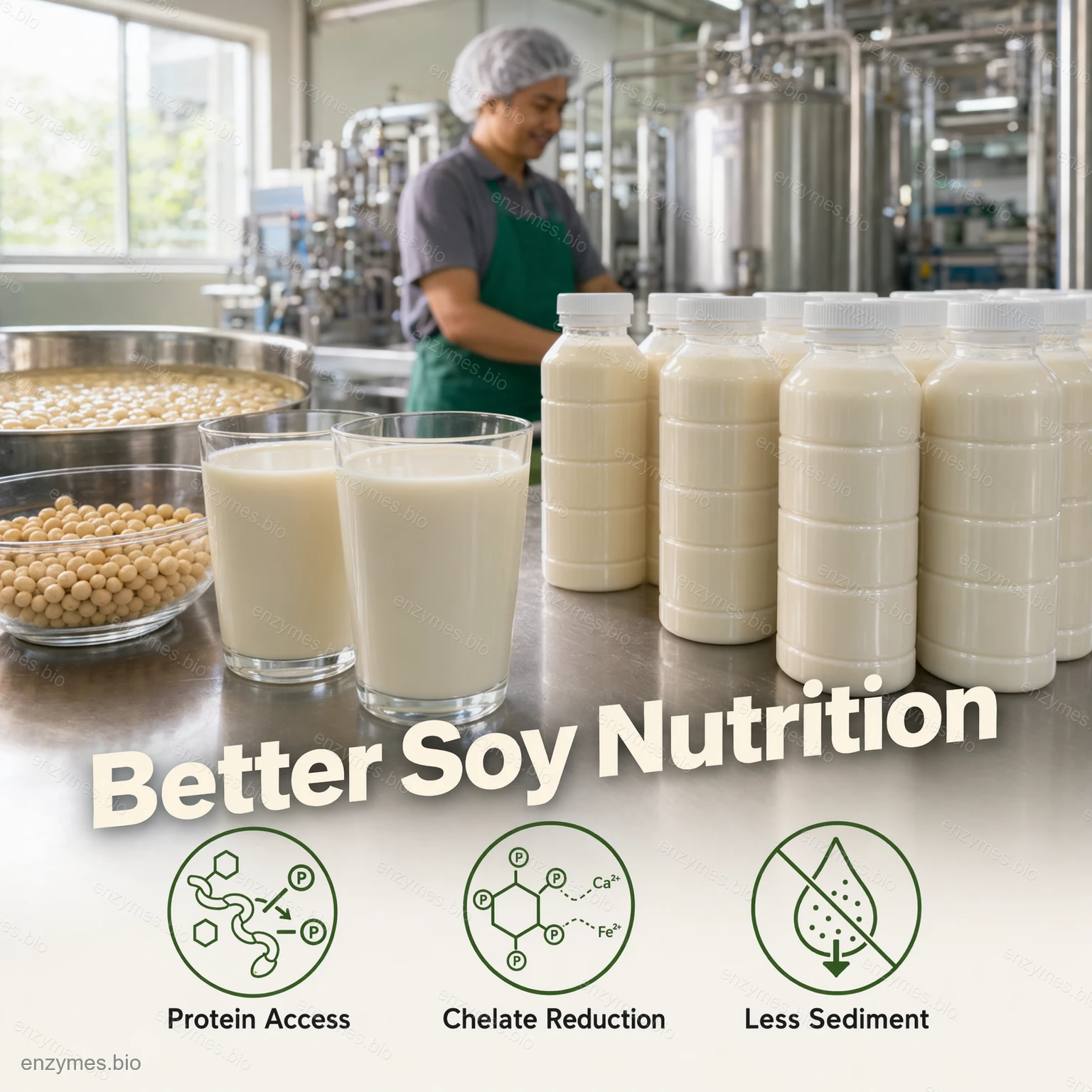 - Покращує засвоюваність соєвих напоїв та соєвого порошку.