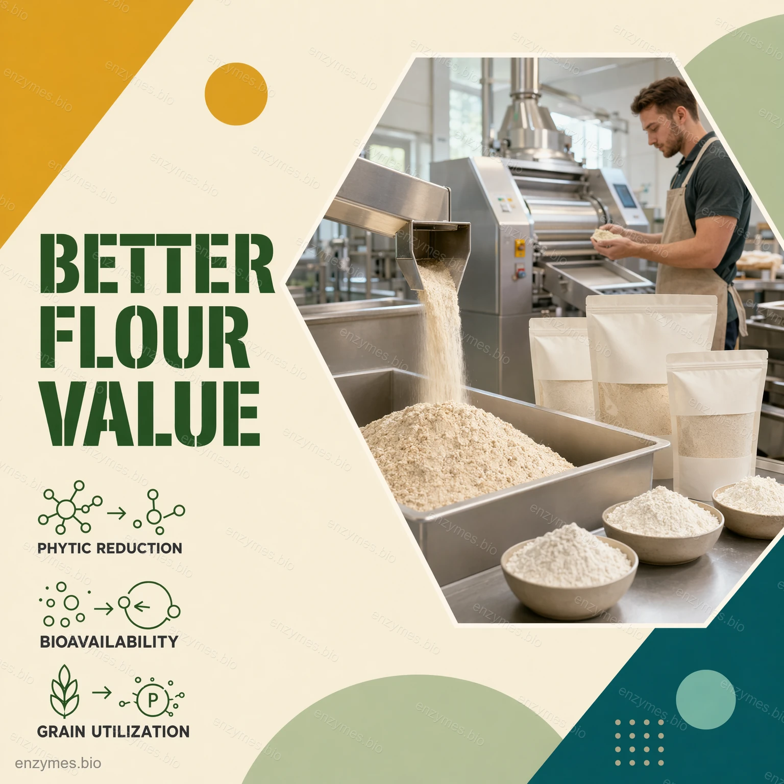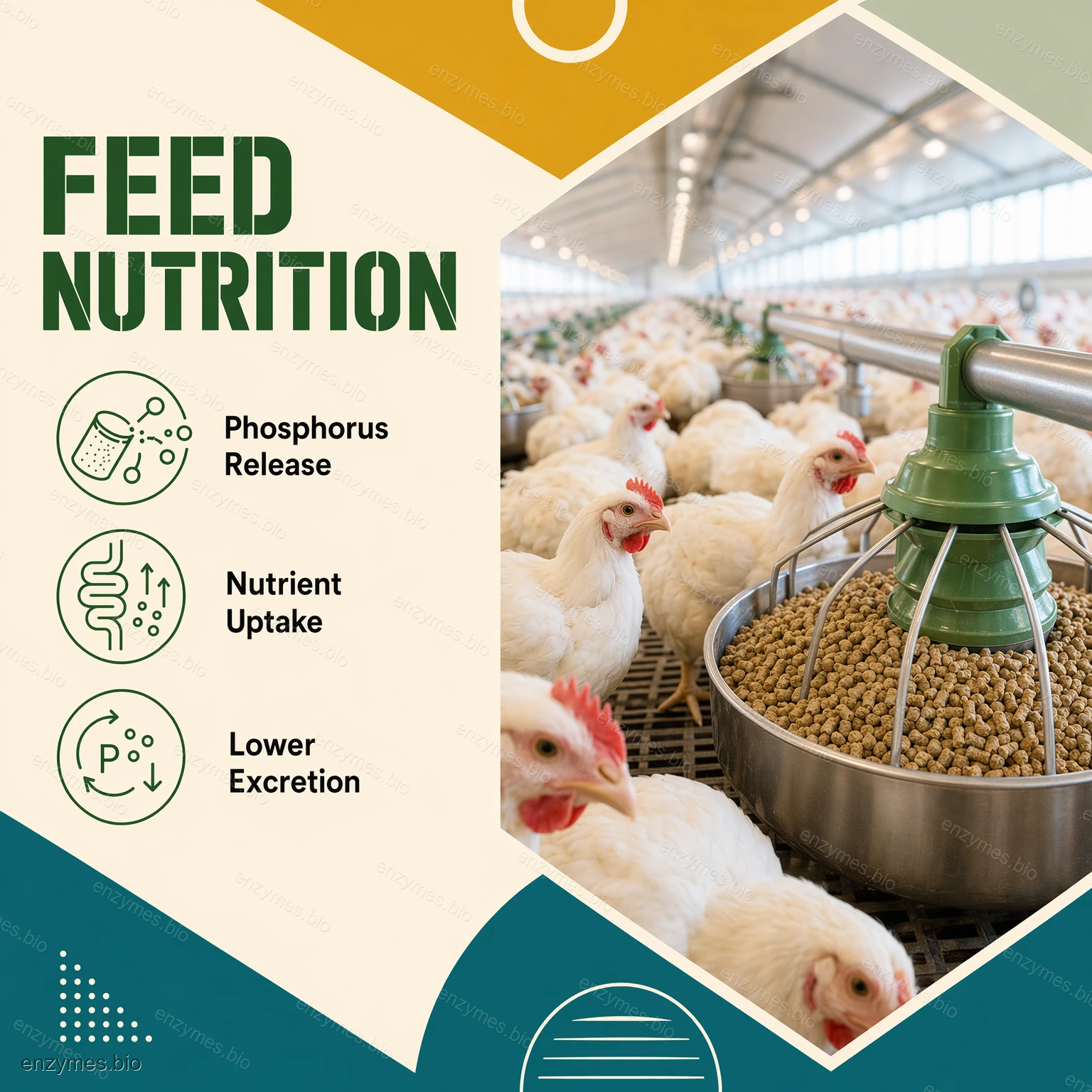 Phytase thủy phân nhóm phosphate trong axit phytic thành inositol và axit phosphoric. Trong quá trình chế biến với ngũ cốc hoặc hạt có dầu, phytase giúp giải phóng phốt pho vô cơ, làm giảm sự ức chế của axit phytic trên protease, tránh hình thành chelate với axit phytic, chẳng hạn như tinh bột-protein-axit phytic, ion kim loại-axit phytic, do đó cải thiện việc sử dụng nguyên liệu thô và giá trị dinh dưỡng của sản phẩm.