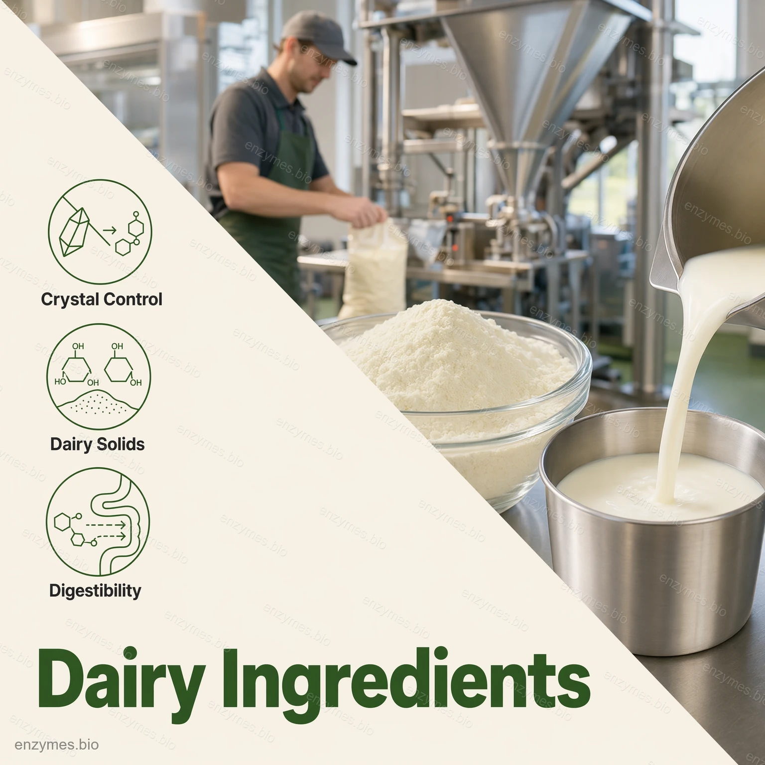 Quá trình thủy phân lactose trước khi lên men có thể giúp giảm các vấn đề về chất lượng liên quan đến lượng lactose quá cao, bao gồm hiện tượng kết tinh và các khuyết tật về kết cấu. - Nguyên liệu sữa và ứng dụng bột sữa
