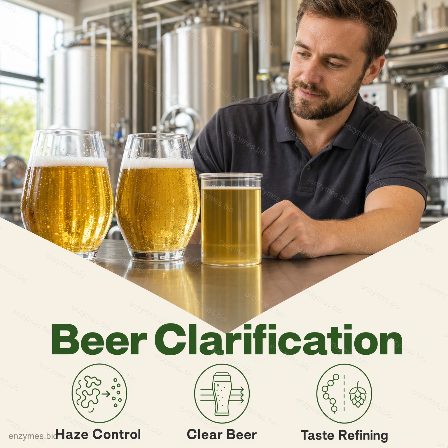 - Trong ngành công nghiệp bia, protease trung tính có tác dụng làm trong tuyệt vời và có thể kết hợp với các hệ thống enzyme khác để tạo ra các enzyme phức hợp trong bia nhằm tăng cường khả năng làm trong và loại bỏ vị đắng.